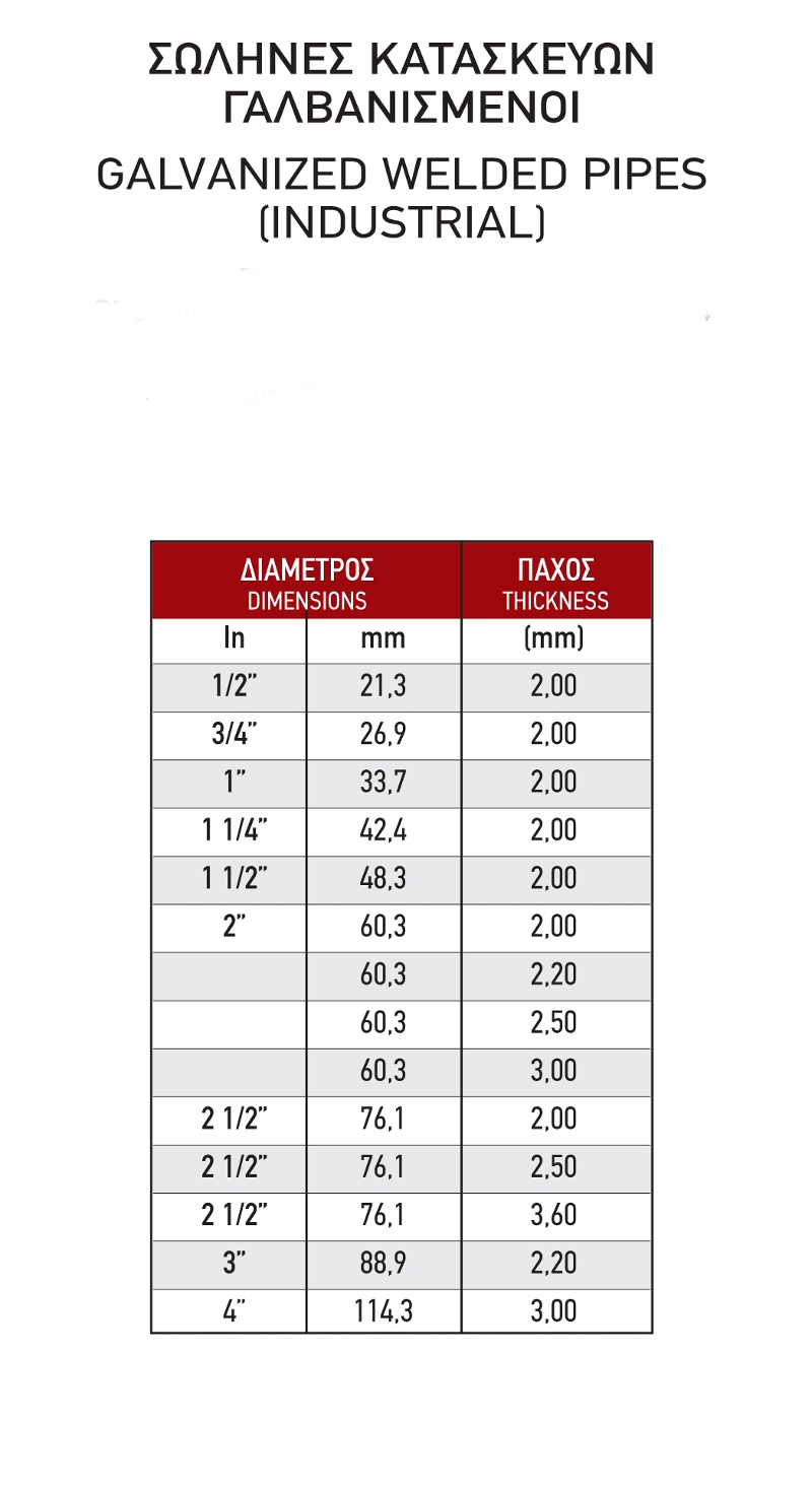 ΣΩΛΗΝΕΣ ΓΑΛΒΑΝΙΖΕ ΠΙΝΑΚΑΣ